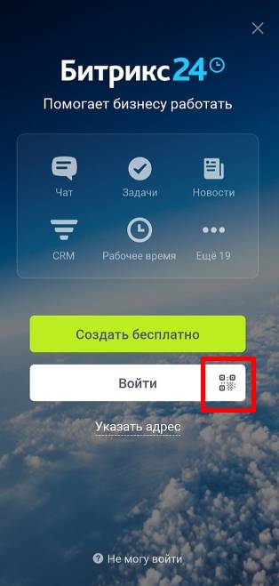 Чтобы войти в мобильное приложение Битрикс24 с помощью QR кода, откройте приложение, нажмите по выделенной кнопке ниже и подтвердите выбор.