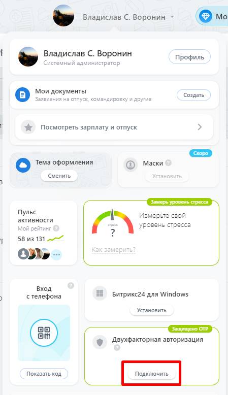 4. В пункте "Двухфакторная авторизация" выбираем "Подключить"