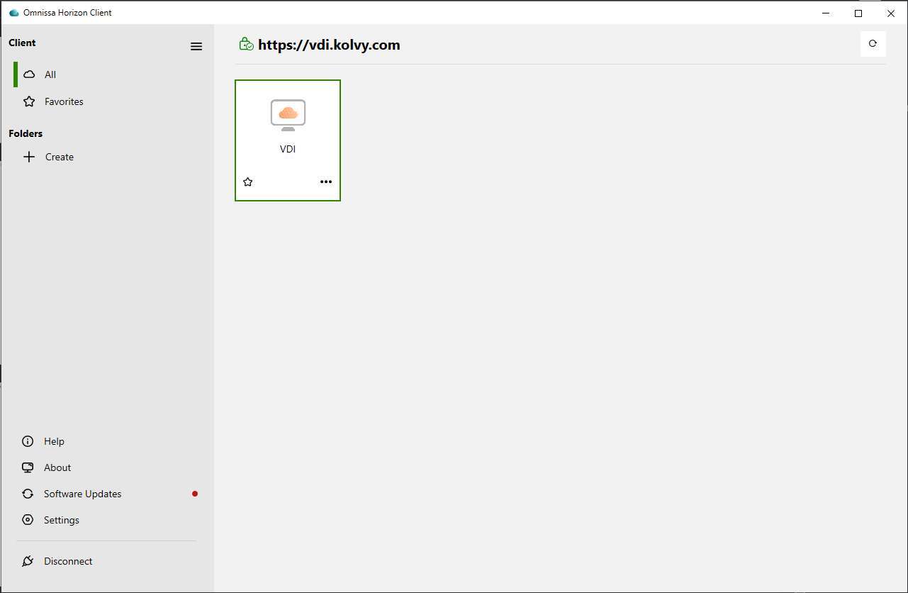 7) Дважды кликните на подключение (в примере его имя VDI) и вы подключитесь к своему рабочему столу.