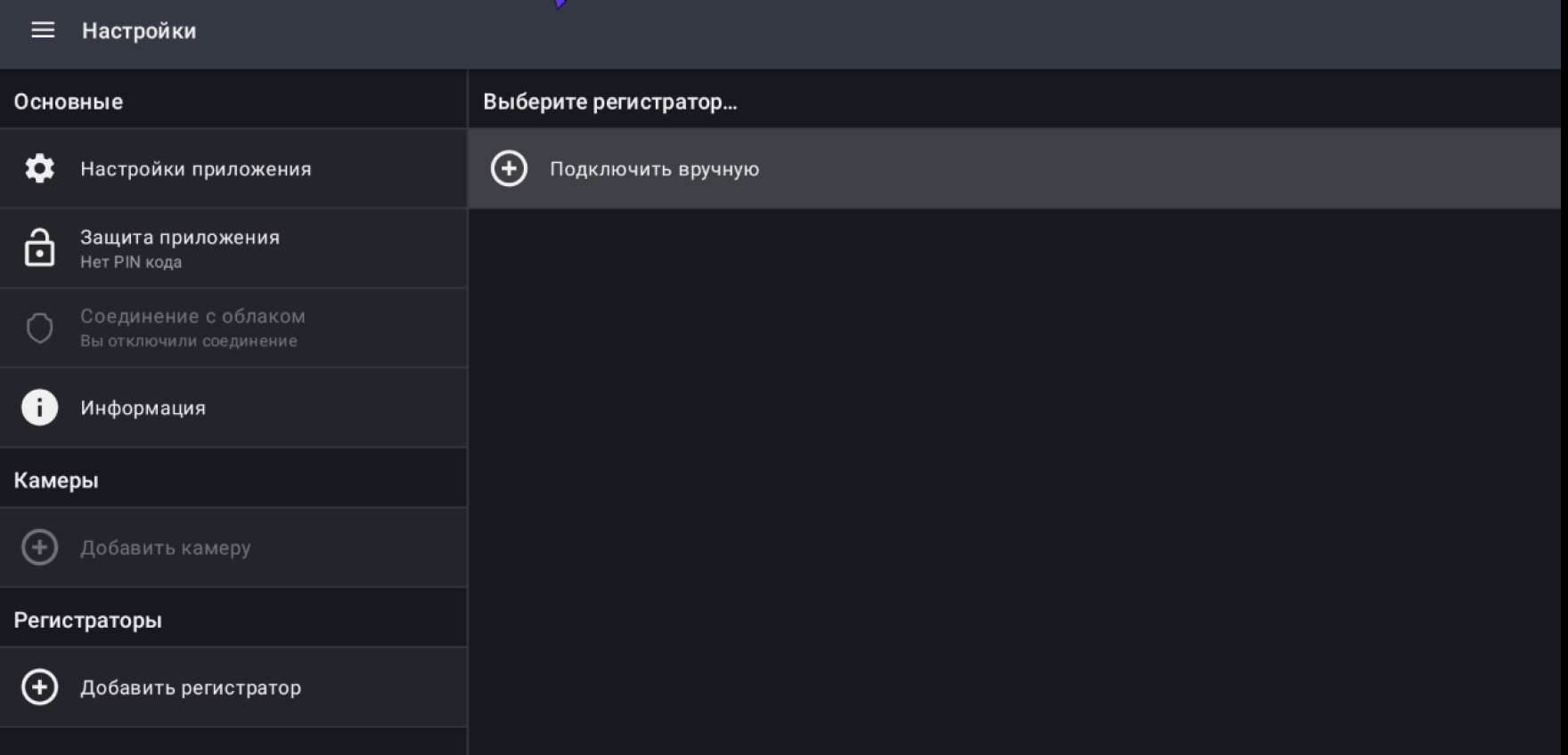 3. В пункте "Регистраторы" выбрать "Добавить регистратор" и "Подключить вручную"