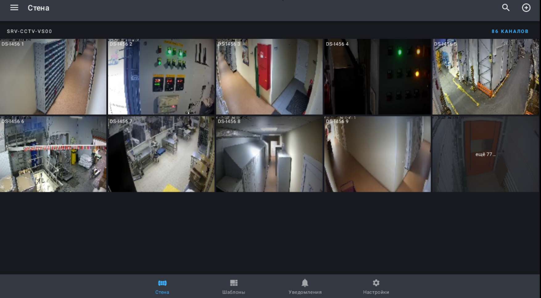 Для просмотра камер используется вкладка "Стена"