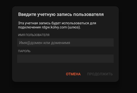 Вводим данные для входа на удаленный рабочий стол:
